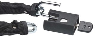 De AXA Clinch+ is een kwalitatieve ketting, uitermate geschikt om uw fiets kort tot middellang te parkeren of om als tweede slot te gebruiken. Dit kettingslot heeft schakels gemaakt van gehard staal en heeft een goede kwaliteit als het gaat om knipkracht. Het losse hangslot maakt de Clinch praktisch in gebruik. De sterke polyester hoes en het rubber rondom het hangslot zorgen voor bescherming van uw fiets tegen eventuele beschadigingen. De Clinch+ wordt geleverd in een zwarte hoes en is 105 cm lang. Mocht het gebeuren dat u uw fietssleutel kwijt bent, dan is dat geen probleem. Een extra sleutel kan via de AXA online sleutelservice besteld worden en wordt binnen enkele dagen geleverd.