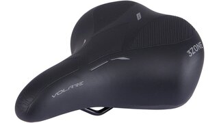 CONTEC zadel "Volare City XXL" Presentatieverpakking, koudschuim, elastomeer demper, City / Tour, voor lichaamsgewicht tot max. 150 kg, unisex, zwart CrMo zadelrail, het 3-zones comfortPlus-systeem biedt in iedere zitpositie optimale comfort. Om tijdens het rechtop zitten vermoeidheid te voorkomen, liggen voor de dichte polsterzone een zachte comfortzone en een vlakke sportzone. De constant elastische koudschuim heeft een zeer gering gewicht en maakt het zadel vederlicht, kan slecht warmte opslaan, waardoor het zadeldek ook na intensieve zoninstraling snel weer afkoeld, 520 g i.› maten (L x B) 260 x 220 mm