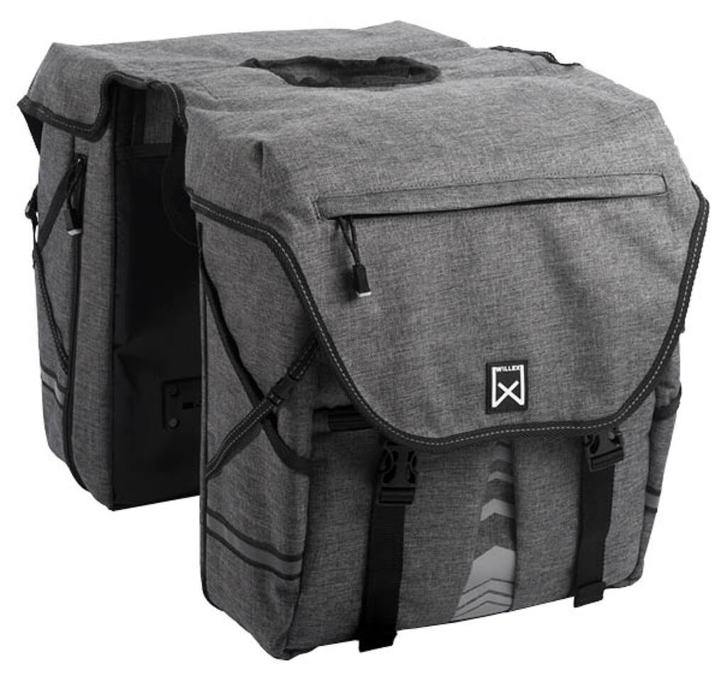 Specificaties Artikelnummer 13613 Kleur Antraciet Afmetingen 50 liter Omschrijving * Compacte dubbele tas, aan beide zijden vergrootbaar met extra rits * Waterdicht en waterafstotend polyester * Met binnenvak en handig haakje voor sleutelbos etc. aan beide zijden * Reflecterende bies * Opvallende reflecterende bedrukking * Gepatenteerde Willex® klemhaken voor stabiele bevestiging op bagagedrager * Inclusief gratis grote regenhoes met Willex® reflectie * Inhoud: 50 liters